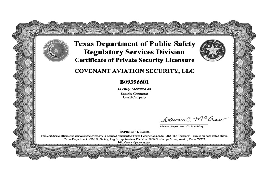 Covenant Aviation Security, LLC (CAS) was formed in 2002 after the tragic events of 9/11 to provide a more effective security model for the transportation sector. Prior to 9/11, airport security was considered by many to be “commodity work” relying on minimum wage personnel who were not properly trained and did not meet basic requirements.